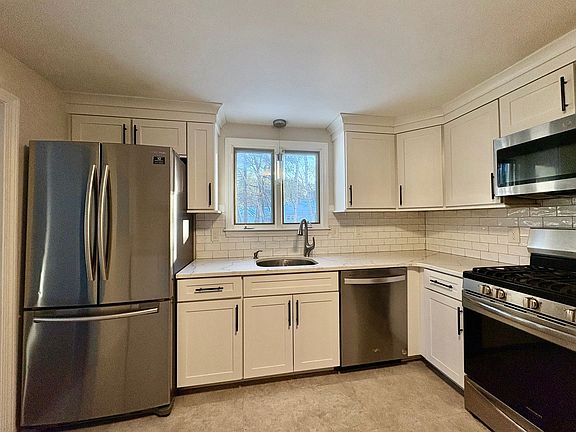 Bright & updated ~2,100 sq ft home featuring modern kitchen, decorative fireplace, and versatile finished basement. Outdoor living includes fenced yard with raised wooden deck & stone patio. Inviting Interiors: Living room with decorative fireplace, a modern kitchen (quartz counters, stainless steel appliances, gas range), dining area overlooking yard. Functional Layout: 3 bedrooms full bath upstairs, half bath downstairs. Finished lower level ideal for work, play, or storage. Outdoor & Parking: Private fenced in yard with deck, patio, and shed. Driveway fits 4 cars, plus on-street options. Comfort & Efficiency: Mini-split A/C (up/down), gas heat, in unit laundry. Outstanding Location: Walking distance to Nabnasset School, Near I-495 & Route 3, Nabnasset Pond & Edwards Beach. Important Details: Rent: $3,650 /mo Utilities: Renter pays water, electric, gas, Wi-Fi Responsibilities: Lawn care (spring-fall) and snow removal by renter Pets: Cat & small dog ( 25 lbs) allowed Move-in costs: First & last month + refundable security deposit No smoking/vaping allowed