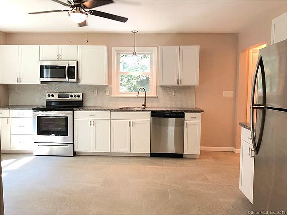 FULLY REMODELED RANCH - Gleaming wood floors, new windows, tile floor, granite countertop and stainless appliances (oven/range, refrigerator, microwave and dishwasher) large eat-in style. Tasteful fixtures including a ceiling fan for each room. The breezeway is fully enclosed with lighting and carpet (17x9) - extra living space and access to rear deck and yard. The deck overlooks over 1/2 acre of shaded rear yard to enjoy. Full walk out basement for workshop and lots of storage plus attached garage. Absolutely move-in ready and convenient access to Rt 32, I395 for commutes to casinos, sub base, Coast Guard.