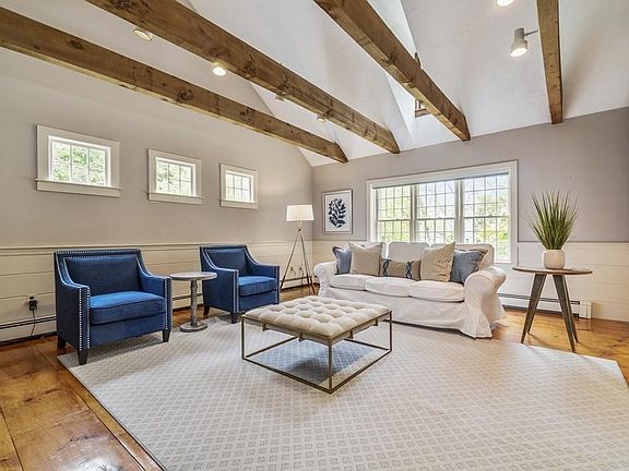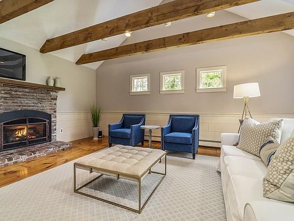 As soon as you turn onto scenic Stetson Shrine Lane you will be taken by it's New England charm. This neighborhood street lined with charming homes and ending with Stetson Meadows Conservation Trails and picnic area will surely entice you to want to visit. This Colonial style home has been expanded, renovated, and designed by Campbell Smith. It continues to unwind and surprise you from the minute you step onto the front porch. The spacious country kitchen is open to the family room w/ gas fireplace, beautiful gleaming wood floors, and exposed beams. Formal dining room and living room sit at the front of the house centered by the foyer and main staircase up. There are 4 spacious bedrooms with 2 full bathrooms plus a laundry room. A bonus room with vaulted ceilings and a wet bar is designed for entertaining. Professionally landscaped and lined with stone walls and a picturesque natural backdrop.