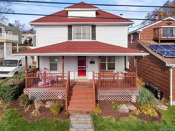 Bring your Rockers to the Front Porch and enjoy the views and breezes off of Long Island Sound! This colonial is in a quaint beach neighborhood and is a stone's throw to the water. The large Living Room features gleaming hardwood flooring and spills into a bright and charming dining room which can accommodate a table big enough for the holidays. The kitchen has warm, honey-toned cabinets, lots of natural light, and opens into a totally fenced-in, manicured backyard with a brick patio. A half bath and laundry room finishes the main floor. Upstairs you'll find two very large bedrooms, the master features water views and a walk-in closet. New furnace/central air! No flood insurance! Make this home yours and enjoy affordable beach living at it's best!