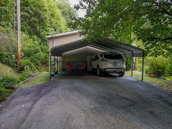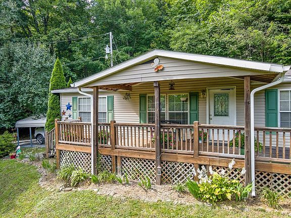GREAT FAMILY HOME located between Franklin & Cashiers, Up high at over 3000 feet elevation so enjoy cooler days here at this spacious home. Home features 3 Bedrooms, 2 baths, with vaulted ceilings, a stone wood-burning fireplace, a huge kitchen with a big island & a separate dining room. It also has a Split Bedroom plan, a large main bedroom with an ensuite bath with double sinks, and a garden tub. Has a spacious laundry room, CH&A, and a nice covered porch looking out over the property & mtn. view. It sits on a permanent block foundation and has a 2 car carport, and a shed. All this is sitting on 1.96 unrestricted acres, with a paved driveway off of a paved stated maintained road. Right now the seller has frontier DSL internet service with wi-fi calling.