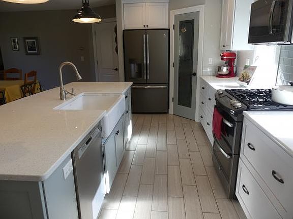 A cook's dream! A spacious ranch with an open floor plan and an amazing new high end kitchen that overlooks the main living area makes this culinary oasis perfect for entertaining. Hardwood floors, living room w/ a brick fireplace, main level master bedroom, a guest suite in the lower level & central air conditioning make this a home easy to love. Enjoy the distant views & large yard from inside or while relaxing outside on an enormous two tiered Trex deck. Addtl updates since the home was purchased: a new roof, exterior paint, light fixtures, window coverings, new mudroom/laundry room.