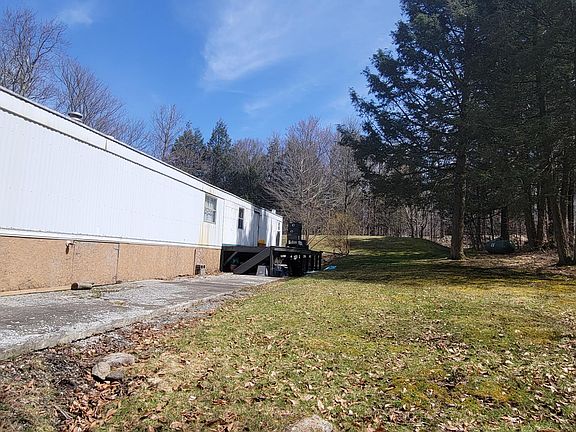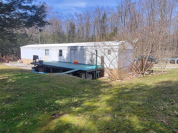 Over an acre with woods all around. Peace and quiet in this 3 bedroom manufactured home with master bath. Front and rear deck. Outbuildings will remain for storage. Private drive. No dues or lot rent!