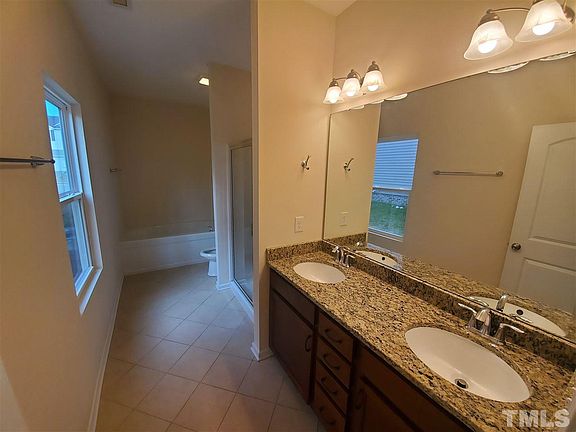 Ranch plan with open living concept. Large kitchen that opens to dining and living room area. Huge master bedroom and walk in closet. Dual vanity and large garden tub. Lots of upgrades: granite counters, pergo floors, freshly painted and new carpet. Walk out the back door to a large deck in your private wooded back yard, well landscaped. Large two car garage.