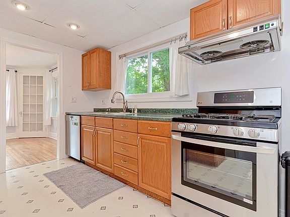 This nicely maintained home offers a bright open-concept dining room & living room with a wood stove. There are hardwood floors throughout the home, 2 nicely sized bedrooms with good closet space & a spacious bath between them. The kitchen is fully applianced with many oak cabinets & ample counter space. The attic is floored for extra storage. The home features a full unfinished basement with interior and exterior access, a 1/2 bath & plenty of space for storage or a workshop. There is a Gas Forced Air Furnace (2009) & Central Air (2019), HW (2019), Roof (7 yrs). Do you like to garden, there are many beautiful perennials on the property. The large private backyard is great for entertaining and offers 3 sheds. The exterior front and back stairways are newer composites. This is a wonderful commuter location with access to public transportation, major highways, shopping, restaurants, and all the great things that Stoneham has to offer.