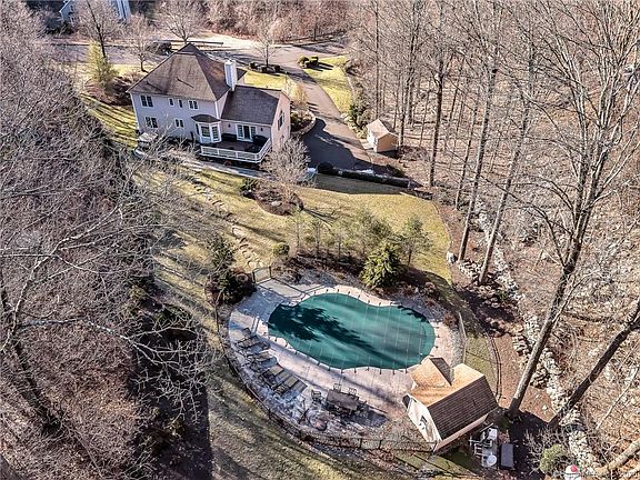 This home should be in a magazine! Picture perfect colonial with stunning newer kitchen, white cabinets,quartz counters, ss appliances and fabulous center island with room for everyone to eat, do homework or just catch up on the day! The pristine hardwood floors run throughout the home and sun fills each and every room! The formal living room dining room and main level office makes day to day living easy with space for all and the fabulous family room with vaulted ceilings gas fireplace and doors to deck will be the room everyone will want to be in. The finished lower level offers a game room and smaller room that would be great theater or at home gym. Lots of organizational spaces walk in closets and access to the two car garage. The upper level boasts 4 nice sized bedrooms great closets and beautifully remodeled baths!The Master Bath is spa-like with a huge walk-in shower, and separate soaking tub & double vanity. This home is truly in move-in condition with extras including being freshly painted in modern color palette- gorgeous trim, beautiful windows & doors and best of all a quiet private backyard. The landscaping is praise worthy around the in-ground heated pool with pool house which is perfect for parties! Enjoy over 2 acres of natural privacy & easy living! Home comes with natural gas heat- whole house generator, Smart controls in house for pool heat & lighting, alarm system, and underground sprinkler system. This one is a must see! Extras include a whole house generator, separate shed for outdoor storage,newer hot water heater and composite, maintenance free front porch. Back Deck and patio to enjoy the back yard hot tub will stay with home...this home offers so much the quality is top of the line inside and out!