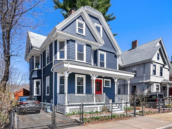 A classic early 20th century spacious 5-bed, 2.5-bath single family home on sunny Sunnyside Street, a one way street near Hyde Square, this freshly painted home offers three levels of living space and oversized bedrooms plus a basement perfect for a workshop.The yard features a custom designed stone patio, garden areas, raised beds and a shed for storage. The front porch leads to a foyer, a living room with fireplace and French doors leading to a formal dining room overlooking the backyard and views of Mission Hill. The eat-in kitchen includes a new gas stove/oven, butcher block counters, refrigerator, dishwasher. A half bath completes the main floor. The second level offers 3 large bedrooms and a full bath. The sky lit third floor features 2 additional large rooms (use as bedrooms, office or flex space) and the third bathroom with a custom tiled shower. Two off street tandem parking spaces are adjacent to the home. Seller welcomes offers with requests for buyer concessions.