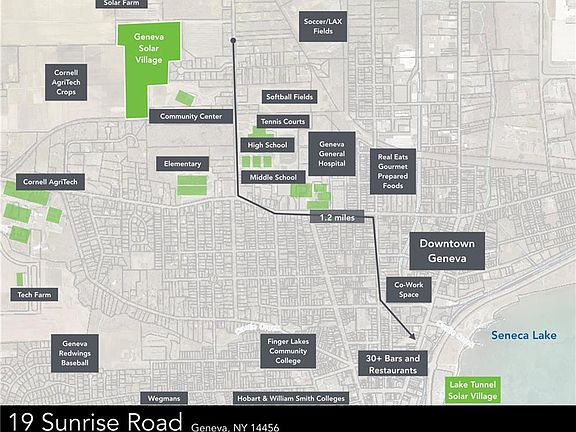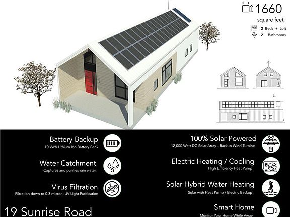 This high-tech, solar powered smart home is fully self sufficient. An oasis in the country, this home still has easy access to shopping, restaurants and coffee shops. 100% solar powered, resilient home with wind turbine, solar battery, and generator backup. Fresh air exchanger with virus filtration. Rainwater catchment and filtration system is a backup to public town water. Full Smart Home system featuring wireless control of front door lock and camera, living, kitchen, and main bedroom lighting, thermostat, and monitoring of energy use, solar production, and solar battery level. Zero maintenance steel siding, triple pane doors and windows, and long lasting metal roofing. Luxury interior finishes include stainless appliances, quartz counters, and eco-friendly bamboo composite flooring. Large loft space could be additional bedroom, office, rec room, etc. Home is part of a 50 acre sustainable development situated in the heart of Finger Lakes wine country. An easy hour drive from Rochester, Syracuse, and Ithaca and a bikeable 1.5 miles to Downtown Geneva and Seneca Lake.