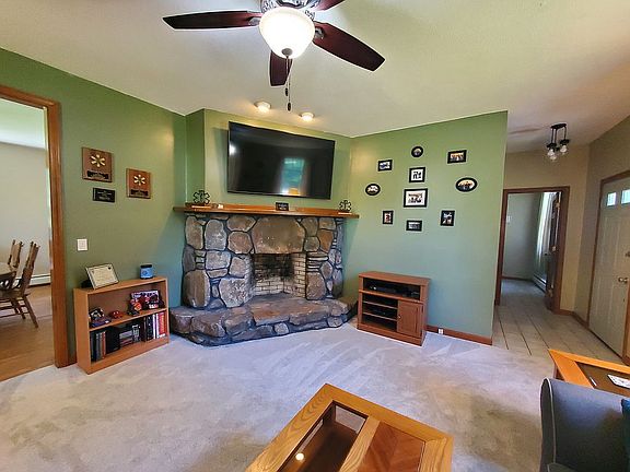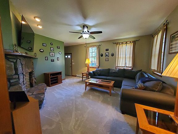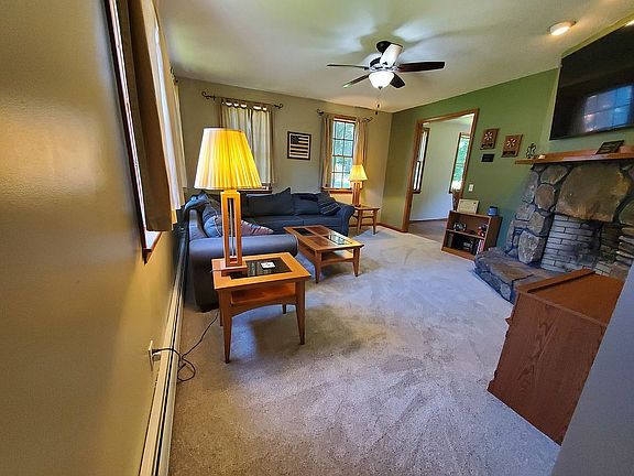Welcome home to this beautiful center chimney cape! The 9' ceilings on the first floor compliment a large eat in kitchen, formal dining room, office and living room featuring a large fieldstone fireplace. Upstairs you will find three large bedrooms with new carpet throughout, along with two beautifully remodeled full baths including the master ensuite. Find your way down to the partially finished basement adding 340 sq ft. of great bonus space or man cave. Top it off on the large back deck with two seating areas in your private back yard!
