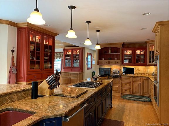 Beautiful Sunswept Drive colonial on west side of town, minutes from schools, in-town shopping, MetroNorth trains and a great commute into Westchester County and NYC. Move-in-ready four bedroom colonial and gorgeous level corner lot with pool and hot tub, ready for you to call HOME! Fall in love with the custom, gourmet chef's kitchen featuring propane cooking, double wall ovens, Kingswood custom cabinets overlooking the pool and yard with warm and inviting dining area with propane stone fireplace, cathedral ceiling with operable skylights, mudroom/laundry and half bath. Family room with cathedral ceiling, exposed beams, skylights and stone wood burning fireplace, formal dining room with hardwood floor, tile entry foyer and living room with. Upper level has three bedrooms and full bath with combination tub/shower and spacious master bedroom with walk-in-closet, full bath with soaking tub, shower, dual sinks, and office/nursery/exercise with built-ins. Full, unfinished, walkout lower level with lots of storage space and potential for future additional finished living space. The lot is wonderful for outdoor entertaining, BBQs, pool parties and more. Enjoy sunsets and walks by Ball Pond, taking in nature's beauty, fishing, paddle boarding, kayaking and ice skating/fishing in winter. New Fairfield is New York's Best Kept Secret - Candlewood Lake, hiking trails, and so much to do, yet only 60 miles from NYC! Enjoy low taxes, too Staycation living at its best Welcome HOME'! Features & Highlights: roof, kitchen, dining area off the kitchen with gas fireplace, whole house generator, a/g pool and outdoor hot tub.