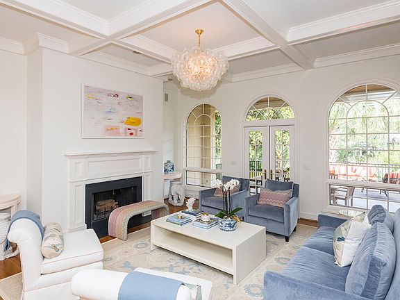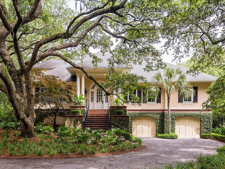 This stately five-bedroom, four-and-one-half bath home is located just across the street from the beach and overlooks a peaceful lagoon on one of Kiawah's most desirable streets. Its impressive exterior and polished landscape lend the home instant curb appeal while a mature live oak tree, brick planters, white columns, and dramatic front door with transoms and sidelights create an inviting entry experience. Indoors, the foyer opens directly into the elegant living area, which is accented by a fireplace and coffered ceilings. Tall windows and doors brighten the room with natural light and open onto the large, rear deck and covered porch. A casual, open-plan family room and eat-in kitchen are adjacent to the living room. Here, tall windows and doors open onto the rear screened porch where a fireplace and outdoor grilling station are perfect for year-round enjoyment and al fresco dining. Exposed beam trusses with skylights create height and brighten the kitchen. Its large central island offers additional storage and prep space, and a wet bar with icemaker and wine chiller extend entertainment possibilities. Conveniently adjacent to the kitchen, the formal dining room is perfect for holiday dinners and more formal affairs. The gracious primary suite is located on the main floor and features a bay window with lagoon views and direct access to the rear deck. The primary bath offers dual vanities, a large shower, and soaking tub. The second floor is home to three ensuite guest rooms and an additional bunk room with custom wainscoting, and a third-floor family room with custom entertainment center offers an ideal place for younger generations to relax. This home features a large laundry on the main floor as well as an elevator. Its large, secure ground level includes dehumidifiers and ample storage space, and the garage can accommodate four cars. This property is offered fully furnished with a Kiawah Island Club Membership.
