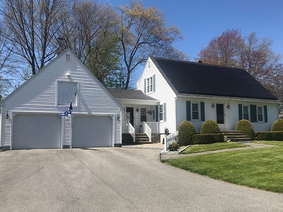 This home is located on the end of the cul- de- sac, on a fenced in corner lot with irrigation system and a lawn which resembles a golf course. Walk up your stone walk way to a family room, which leads to a deck and patio on a private almost half acre lot of paradise. This home features 2 new renovated bathrooms and additional room in the lower level which offers an electric fireplace. This open relaxed floor plan has a large kitchen with a glass back splash and opens into the dining room. The first floor offers a bedroom ,half bath, and an oversized living room 21x13.. The master bedroom is 17x14 and offers two large closets. The other bedroom on the second floor is also oversized with an abundance of closet space. This home features solar panels, the cost is $118 to Vivant a month and typically have a credit for electricity.The driveway is newly installed . Convenient to major highways, tax free New Hampshire, the ocean, and the mountains