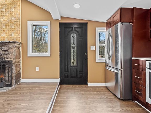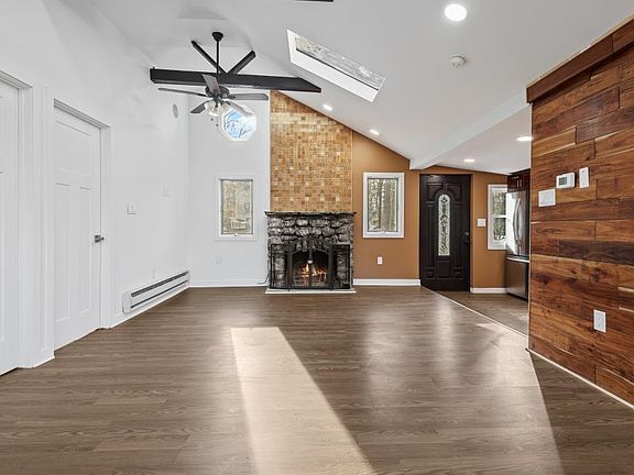 Introducing a beautifully renovated ranch-style rental featuring 2 bedrooms. Step inside to discover exquisite hardwood floors that have been recently refinished, accompanied by a vibrant and fresh coat of paint throughout. The spacious layout boasts cathedral/vaulted high ceilings, creating an open and airy ambiance. The kitchen has been tastefully updated with an abundance of cherry wood cabinets, providing ample storage space for the aspiring chef. Outside, the property showcases meticulous landscaping, adding to its charm. This rental also offers convenient amenities such as a pristine washer and dryer, electric stove, and fridge. Each room is equipped with a closet, ensuring ample storage for your belongings. Additionally, the wood-burning stove has been recently cleaned for your comfort. For enhanced security, outside video cameras are installed, allowing you to connect them to your cell phone for peace of mind. Owner pays for water