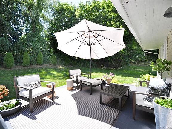 Your search is over Gorgeous turn-key ranch in desirable & quiet Tanglewood Rd. neighborhood. Beautifully remodeled and spacious eat-in kitchen with quartz countertops, marble tile backsplash, breakfast bar, two sink areas with picture window overlooking the picturesque backyard, hardwood floors, stainless appliances including gas stove, and more. Formal sunken living room with impressive millwork & hardwood floors. Den/Sunroom with wood-burning fireplace & beautiful built-ins. Three spacious bedrooms including a master bedroom with walk-in closet and full bath. First floor laundry. Partially finished lower level offers tons of additional recreation/hobby/workout space. Beautiful backyard patio for entertaining and enjoyment. UPDATES INCLUDE CENTRAL AIR, BRAND NEW ROOF, NEWER LENNOX GAS BOILER, NEWER ELECTRICAL PANEL, NEST THERMOSTATS. Walk to Eisenhower Park, Aiken Elementary, King Philip Middle School, shopping, worship, and so much more