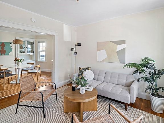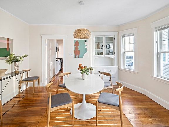 Refreshed and fabulous is this 2 bedroom condo on a one-way street in coveted East Arlington. Step into the southeast facing graciously sized foyer with coat closet. The classic floor plan offers open living and dining room with built-in hutch and both bedrooms easily accommodate queen sized beds. The bathroom has had stunning updates including flooring, vanity, toilet, light fixture, and hardware. The hip kitchen includes live edge butcher block counters, ample cabinetry, new SS appliances, sink, light fixture, and hardware. Off of the kitchen is a pantry including new washer/dryer. Hardwood floors throughout, new lighting, vinyl replacement windows, new water heater, private basement access providing half the basement for unit 19, front and rear porches, one garage plus one off-street parking. All of this steps to Mass Ave, Magnolia Park, Alewife T, Alewife Greenway, and all the beloved shops and restaurants of East Arlington.