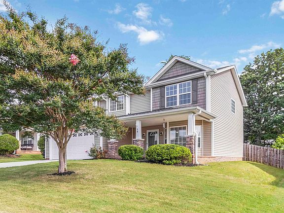 Welcome to this impeccably maintained, move-in-ready 4Br/2.5Ba home, perfectly located just minutes from everything Greenville has to offer! A spacious, oversized front porch warmly greets you and provides the perfect spot to start or end your day. Inside, you’ll find fresh interior paint and brand-new flooring throughout, including stylish and durable LVP on the main level and new carpet upstairs (installed June 2025). Step into the foyer, where the formal dining room to your right features a charming bay window and abundant natural light. The open-concept kitchen, where all appliances convey, flows seamlessly into the breakfast area and large great room, complete with a cozy gas fireplace and space for an oversized sectional. From the living room, enjoy views of the level, fully fenced backyard—ideal for relaxation, entertaining, or play. Upstairs, you’ll find four spacious bedrooms and a generous walk-in laundry room with potential for a utility sink or extra storage. The primary suite features a tray ceiling, a large en-suite bath with dual vanities, and a walk-in closet. Nestled in a small, walkable neighborhood with easy access to Greenville shopping, dining, and I-85/385, this home checks all the boxes for comfort and convenience! Also new Roof, HVAC & Water Heater within the last year - makes this a great buy!