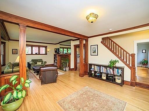 Beautifully appointed home in Watertown's desirable East End has been impeccably maintained. Situated on attractively landscaped lot with farmer's front porch, back deck and two car garage. Inviting floor plan with hardwood floors, high ceilings and abundant natural light throughout. Spacious living room with fireplace and formal dining room including original built-in cabinetry. Recently remodeled kitchen and ½ bath with granite countertops and new appliances. The second floor offers 4 generous sized bedrooms, sunroom and updated full bath. Walk-up attic with plenty of room for storage or possible expansion and full basement. Original character remains with numerous updates of today including newer roof, hi-efficiency boiler, fully insulated, updated electrical & plumbing, new gutters and gas heat. In prime location with close proximity to Coolidge Square, restaurants, shops, schools and commuter routes!