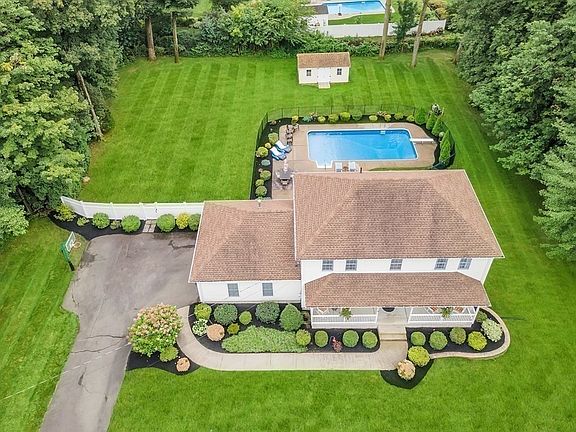 YOUR PICTURE PERFECT PARADISE WITH INGROUND POOL AWAITS! Pride of ownership is evident throughout this meticulously maintained home boasting exquisitely manicured grounds. This entertainers dream abuts Stonegate community & is just steps away from the CT. River. A handsome colonial that's been pampered with updates & improvements over the years making this a truly, move-in ready home! Gleaming wood floors welcome you into both the formal & casual living spaces. The family room features a gas fireplace & is open to the eat-in kitchen with granite counters, pantry & breakfast bar. The 1st floor also sports a 1/2 bath with laundry for added convenience. Upstairs you'll find 4 bedrooms & 2 full baths including the en-suite primary bedroom sporting wood floors, tray ceiling, walk-in closet & full bath. The finished basement offers new flooring with additional living space that could serve a variety of needs. The lower level also offers a second set of laundry hook ups & plenty storage.