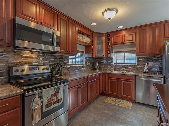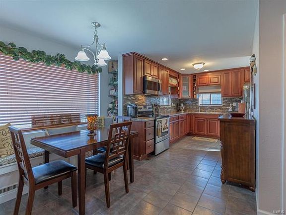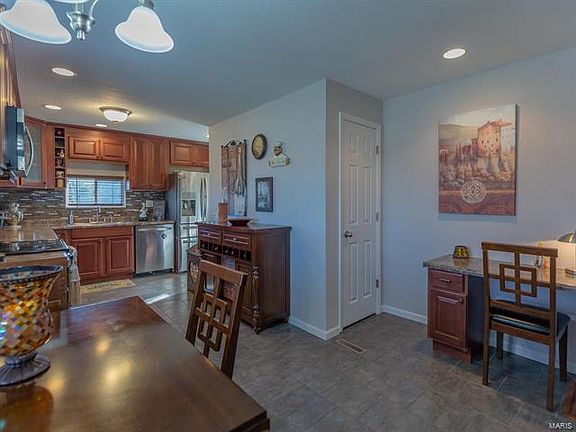 Beautifully updated 3 bedroom, 2 full bath ranch on .74 +/- acres in Fenton!! Fall in love with the charming covered front porch and great open floor plan. The kitchen has high end custom 42 in cabinets, tile back-splash, ceramic flooring and top of the line stainless steel appliances. Built in window seat in the breakfast nook. Patio off the kitchen leads to the huge yard with utility shed. Seller to include newer washer and dryer; John Deere tractor is negotiable. This home is virtually maintenance free with newer siding, architectural roof, HVAC, retaining wall and driveway. Easy main level attic access for added storage. Two car attached garage and unfinished basement. Plenty of overflow parking includes area to park RV or camper. Conveniently located off Hwy 30 with nearby shopping, restaurants and Gravois Bluffs. Freshly painted and move in ready!
