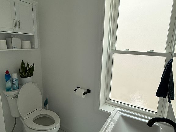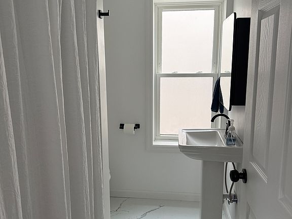 The home includes its own backyard separate from carriage house in the back, a sunny front porch, a newly updated eat-in kitchen with dishwasher and large island, two recently renovated full bathrooms, and upstairs laundry with washer and dryer provided.