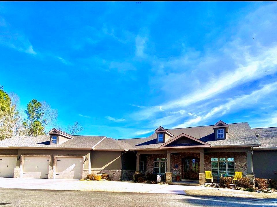 ONE OF THE BEST QUALITY BUILT LAKEFRONT (East Exp on Lakeside), ONE LEVEL, 3 CAR OVERSIZED INSULATED GARAGE with electric lift allowing more storage to floored attic. This elite custom construction by ELLISON Construction features so many upgraded features it would be impossible to list them all. Top of the line on everything. Crown molding, beautiful wood floors, 3 Bedrooms, 2 1/2 Baths, Office, Great Room with beams, 10' Ceilings, Split Bedroom Plan, Formal Dining, Eat in Kitchen, Gas Range. Extra Large Pantry, granite counters, 2 Refrigerators and Washer/Dryer convey. Heating system has 3 separate zones for convenience, pre-wired for portable generator. Mostly wood throughout, Carpet in guest bedrooms, heated tile in master bath, tile in guest baths and laundry rm. Beautiful seasonal lake views of open water, swim dock and boat ramp included. 2 Covered Decks, Lake fed sprinkler system and maintenance free professional landscaping. ROOF was replaced in 2023. Approximately 3137 Square Ft. h/c all on one level. Offering Price: $789,000.