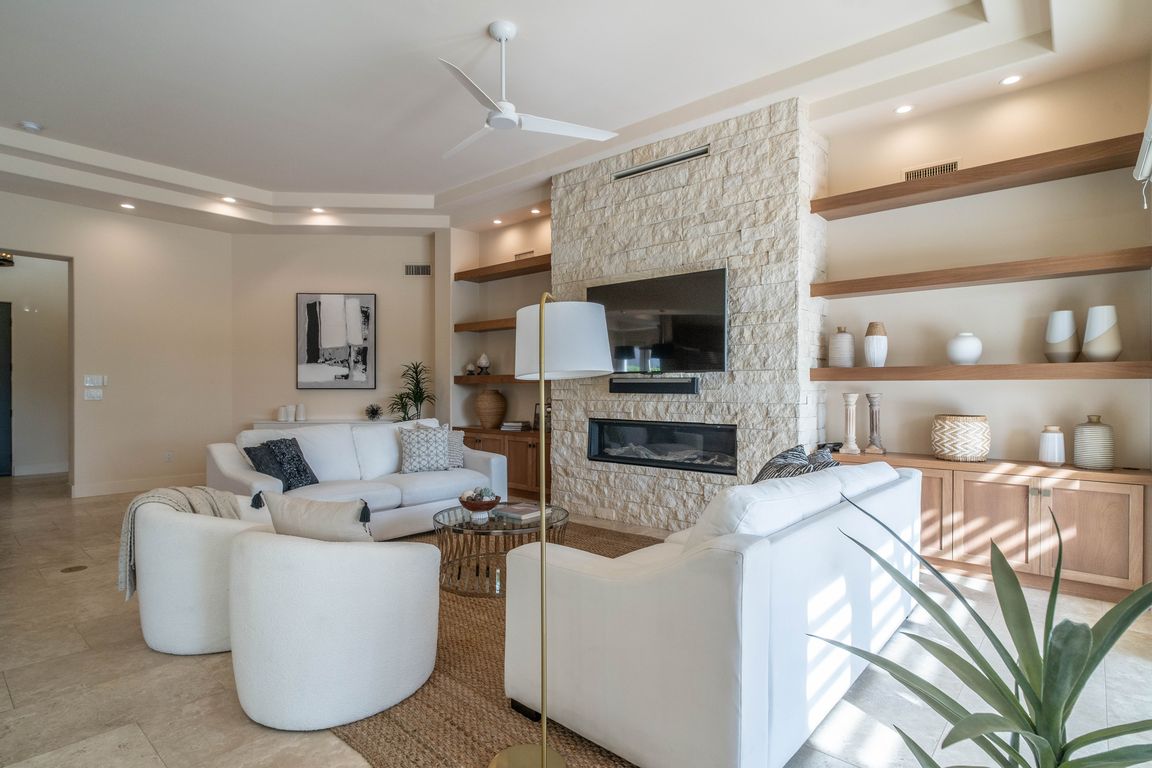 Beautifully reimagined and, contemporary free standing Mission Hills home on fee land, (you own). This stunning residence overlooks the Pete Dye Challenge Course and includes newer air conditioners, tankless water heater, whole house water filtration system, newly resurfaced pebble tec pool with expanded concrete patio for easy entertaining. Interior finishes include, ...