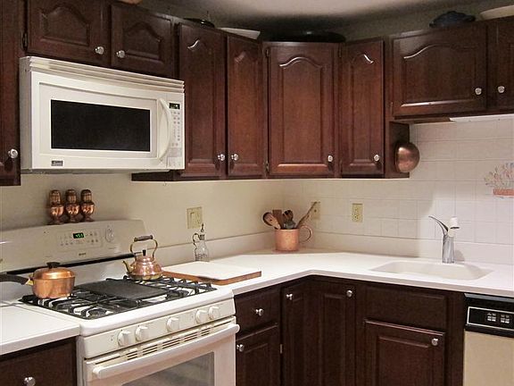 Beautiful end unit townhouse overlooking the Village Green in Stratford Ponds. Pretty kitchen with cherry cabinets and breakfast nook. Formal living room with sliding glass doors that open to private screened port. Living room with gas fireplace and built-ins. Choose either the first floor bedroom with private bath and walk in closet or second floor bedroom with access to the bathroom from within the room or from the hall. Good sized loft overlooks the living room. There is also a finished basement with a large cedar closet. This is a wonderful home that does not feel like a condo. If you have wanted to live in Stratford Ponds, this is your chance.