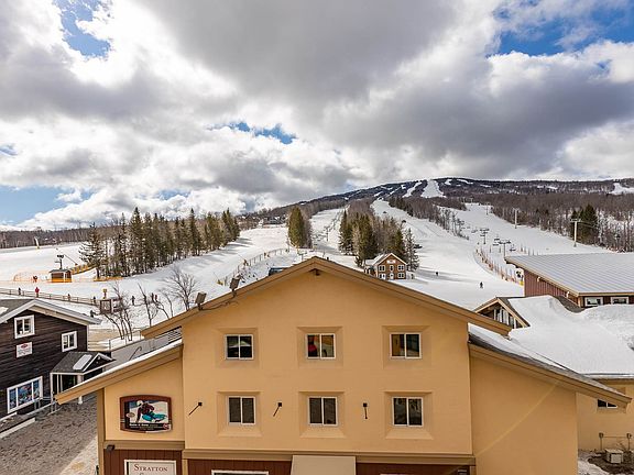 The Landmark at Stratton is located in the heart of it all. The quaint Stratton village and the ski area is steps from the door of this 3 bedroom trailside condo offering. Leave the car parked for the weekend, and be in the village! Easy access to restaurants, deli, market, shops, and of course the mountain! Watch skiers from the condo, come home for lunch, and enjoy in the village living from this trailside condo. Two reserved parking spaces, an owners lounge with billiards, fireplace, and space to spread out over an apres ski board game. Ski lockers are on the main floor, steps from ski school, the lifts, and all of Stratton base area. Master bedroom with cathedral ceiling includes laundry closet. Two additional bedrooms upstairs with shared bathroom, and views of Bromley Mountain. Located on the top floor of the building, and end of the hallway, making for the quietest location in the building. Air conditioning for your summer use. Excellent rental history. Make The Landmark your Stratton address, and live mountain life at its best. Showings to commence when the 'stay home, stay safe' order has been lifted.