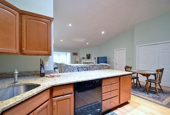 Better than new Ranch Style Half-Duplex in Desirable Highland Village complex! Walk in to an open floor concept boasting gleaming hardwood floors throughout! Beautiful kitchen features granite countertops w/ large breakfast bar, maple cabinets offering plenty of storage, recessed lighting & sky light! Living room offers vaulted ceilings, recessed lights & propane fire place! Master suite complete with plush wall to wall carpet, large closet along w/ master bath featuring linen closet! Spacious second bedroom features wall to wall carpet & closet. Sun filled den offers tons of natural light & access out to the back deck - great place for summer BBQ's! Large lower level offers plenty of storage space throughout and features finished bonus room, potential for office - bring your ideas! Attached garage w/ direct entry & paved driveway offers plenty of parking! Close to downtown Paxton, schools & more! Don't miss out, see it today!