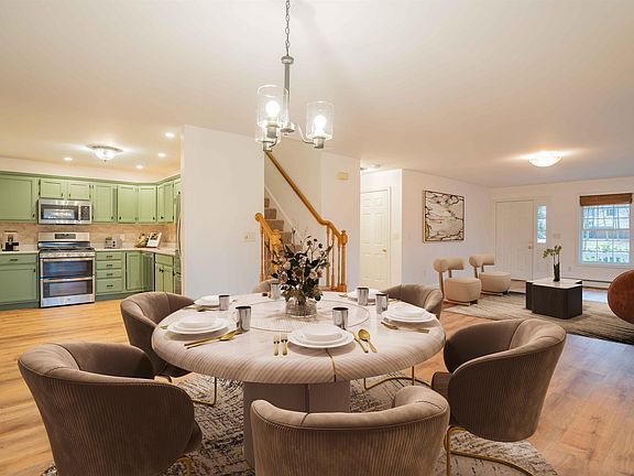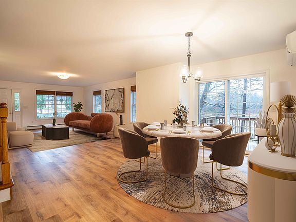 Welcome to this rare 3 bedroom condo. Retreat to your first floor primary suite with a huge bathroom. Open concept floor plan with dining room and living room open to the kitchen. You will enjoy talking to your guests while preparint and cooking on your gas stove. Look out to your private deck overlooking the woods/pond to see the ducks and birds. The attached oversized garage will protect you from the elements. Walk up to the second floor with the large bedrooms with nice sized closets as well as another full bath. This unit has 3 mini splits for a/c and/or heat. Also, note that a working fireplace is behind the buildout in the living/dining. Come see for yourself