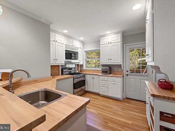 Completely renovated , solid brick rancher in the heart of Berryville. This isn’t just fresh paint. They thought of everything. Modern layout, open kitchen, primary suite, updated electrical/plumbing/HVAC/windows & doors... The kitchen is bright and open with butcher block counters, a breakfast bar and stainless appliances. The primary suite is HUGE and features 2 impressive walk-in closets. Natural Gas, duel fuel heating had the current owner's gas bill around $700 for the YEAR. The back deck overlooks the level, secluded backyard with mature plantings and very little upkeep. The unfinished basement is a freshly painted blank slate at walkout level to the backyard, added outlets. All wood floors, modern internet, exterior cameras.. the list goes on. Lock in that rate! All sizes approximate.
