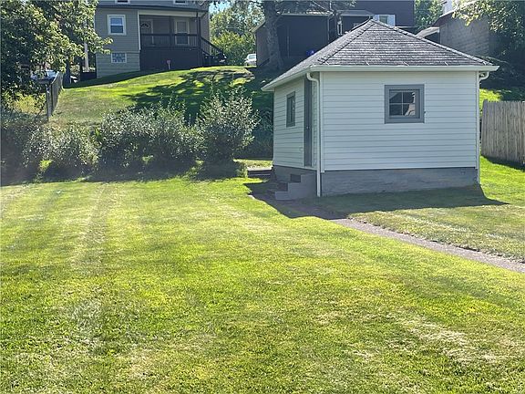 Air. Bilco door exit from basement. Nice back yard with one car detached garage from alley. Cement driveway beside house. move in condition.