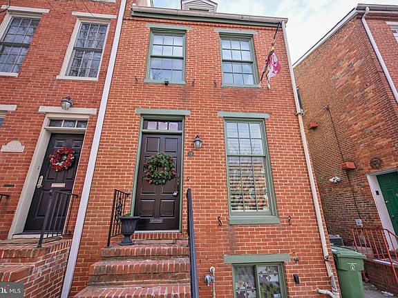 Welcome to 19 W Montgomery St, an exceptional end of group home in the heart of Federal Hill! This beautifully maintained 3-bedroom, 2.5-bathroom gem combines classic charm with modern updates, offering a thoughtfully designed floor plan and inviting outdoor spaces. Nestled in a prime location, you'll enjoy all the amenities Federal Hill has to offer, along with convenient access to commuter routes. Enter to a warm and welcoming living room, featuring gleaming hardwood floors and recessed lighting that flow throughout the main level. The kitchen boasts upgraded countertops, a convenient pantry, and ample width for an island—a luxury in rowhomes. The expansive dining room is perfect for entertaining, while a second living space at the back of the home provides a cozy retreat, complete with a free-standing gas fireplace. The rear patio is a lush oasis, flourishing with hydrangeas, columbines, irises, black-eyed Susans, and even roses along a charming awning. An additional side patio off the kitchen is perfect for grilling. The main level also includes a spacious half bath and a convenient coat closet. Upstairs, the primary suite is a true sanctuary, featuring soaring ceilings, abundant natural light, a ceiling fan, and a double closet with built-in storage systems. The en suite bathroom offers a double vanity and plenty of space. Step out onto the private composite deck—recently updated—offering unmatched tranquility and privacy with no neighboring decks. The second bedroom on this level features its own double closet with custom organizers, a built-in bookshelf, and access to the second full bathroom. On the third floor, you'll find a bright and airy third bedroom, complete with a skylight, ceiling fan, and plentiful closet or storage space. The partially finished basement provides versatile space for a home office, gym, or recreation area, as well as a dedicated laundry room with shelving, a utility area, and an expansive storage area. Recent updates include: HVAC system (2019), brand-new roof (spring 2024), refrigerator (2019), deck off the primary suite updated to composite and plastic/metal railing--very low-maintenance (2023), duct work was professionally cleaned recently, new shutters in the living room, and the exterior was painted just a few months ago. Don't miss your opportunity to own this stunning home in one of Baltimore's iconic neighborhoods. Schedule your showing today!