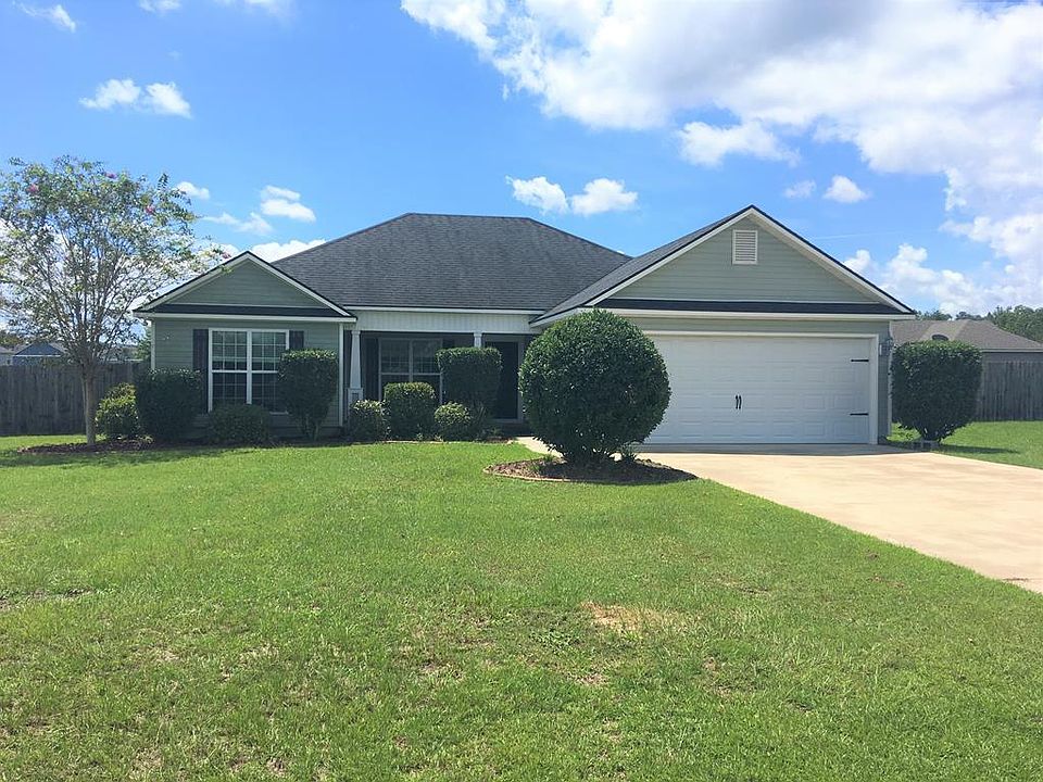 SELLER WILL CONTRIBUTE TO BUYER'S CLOSING COSTS! Charming, open concept 3BR/2BA home that sits on a large 0.55 acre corner lot10 minutes north of MAFB! Desirable floor plan with tile in kitchen & bathrooms & carpet in bedrooms. Master features trey ceilings, large walk in closet, & bathroom with separate shower/double vanity & soaking tub. Spacious bedrooms are perfect for children of any age, guests, home office, or man cave. Kitchen features stainless appliances, pantry, & island overlooks spacious great room, provides additional seating, & is the perfect place to entertain guests. Gorgeous coffered ceilings in the breakfast room. The covered patio out back is a great spot for grilling with family & friends. Additional utility/storage closet in the garage for tools & toys. Let the kids & pets play out back in the large yard enclosed with a privacy fence. Low maintenance vinyl siding!