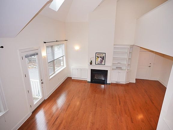 DRAMATIC PENTHOUSE condo on top 2 floors of elevatored bldg; 2013 BOUTIQUE condo complex (NOT age restricted); LOW CONDO FEES; natural light flows from multiple windows & skylights; OPEN FLOOR PLAN living/dining rm w/soaring cathedral ceiling & skylights, wood floors, gas fireplace, private balcony/deck; huge CHEF'S KITCHEN w/GRANITE counters, SPECIALTY CABINETS & STAINLESS appliances; main level master bed suite w/coffered ceiling & master bath (double vanities, spa tub & separate glass enclosed shower) & walk in closet plus add'l closet; main level powder room & separate in-unit laundry rm (washer/dryer excluded). Upper level provides open flr plan loft/family rm w/gas fireplace, cathedral ceiling & skylight; guest bedrm w/walk-in closet plus en suite private bath w/glass enclosed shower, double sinks & skylight; 2 car tandem garage prkg plus 1 outside prkg. spot at garage door; minutes to Mass Pike & convenient to new shops & services at Wayland Town Center!