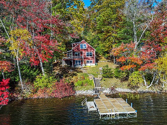 FLYING POND Just steps to the water, this year-round 3BR/3BA home has one of the best views on the lake! Spend the day on the lakeside deck or in the screened porch listening to the loons and then share a meal watching the sunset over the water. This home has an easy floor plan with an open kitchen/dining/living area that opens onto the deck and porch as well as a first floor bedroom and full bath with laundry. Upstairs are two additional bedrooms - one with a commanding view of the lake - as well as a spa bathroom complete with a clawfoot tub and double vanities. Daylight walkout basement with finished den, half bath, large utility room and double doors that open to the yard and lake. Keep the boat on your private dock with deepwater frontage that is perfect for swimming or fishing. Standby generator provides peace of mind, raised bed gardens with raspberries and blueberry bushes and established perennial beds. Home has southern exposure for all day sunshine and the most amazing sunsets each night! Flying Pond has a state maintained public boat ramp, great sport fishing, many loon pairs along with almost 9 miles of shoreline and islands to explore! Come escape to the lake!