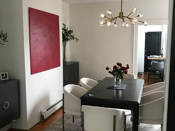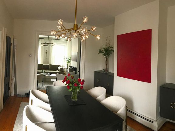 This unit occupies the 2nd and 3rd floor of a row house. On the first floor of the unit you will find the kitchen, living room, dining room and 1/2 bath. Upstairs there are 3 bedrooms and full bath.