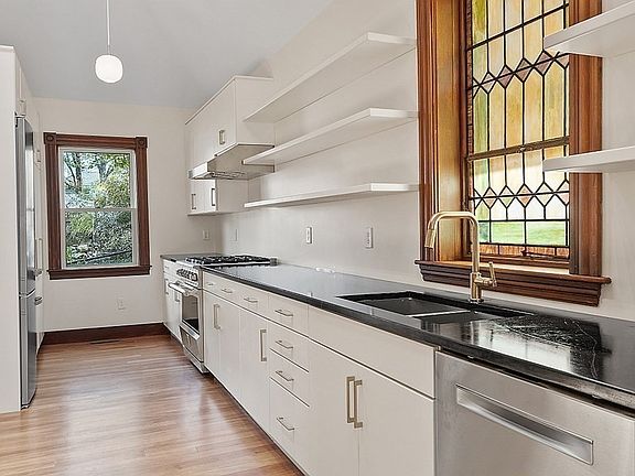 - Features: Closet/Cabinets - Custom Built, Flooring - Hardwood, Window(s) - Stained Glass, Countertops - Stone/Granite/Solid, Open Floorplan, Stainless Steel Appliances, Washer Hookup, Gas Stove