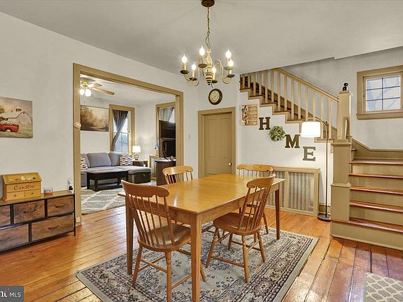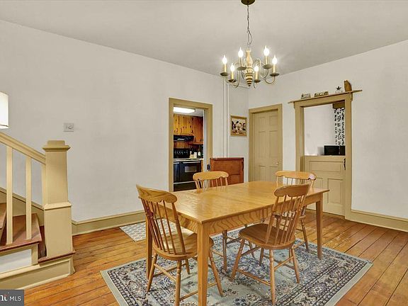 Stepping into this 1850 Farmhouse is like stepping back in time, yet with the comforts of modern living. The original charm is evident in every corner, from the authentic painted woodwork that graces the walls to the classic pine cabinets in the eat-in kitchen, complimented with newer countertops. The beautifully renovated bathroom boasts the finest upgrades, a testament to the care taken to enhance this historic home. A study conveniently located off the dining room offers versatility as a potential extra guest room The enchanting old-world staircase leads to the second floor, where three cozy bedrooms await, alongside a walk-up attic with ample storage space. Outside the wraparound porch invites relaxation, while the oversized three car garage provides modern convenience. The presence of the original garage adds to the property's unique character, and abundant off-street parking ensures ample space for guests. Nestled in a quiet location, this farmhouse offers a haven of peace and tranquility, a perfect retreat after a busy day.