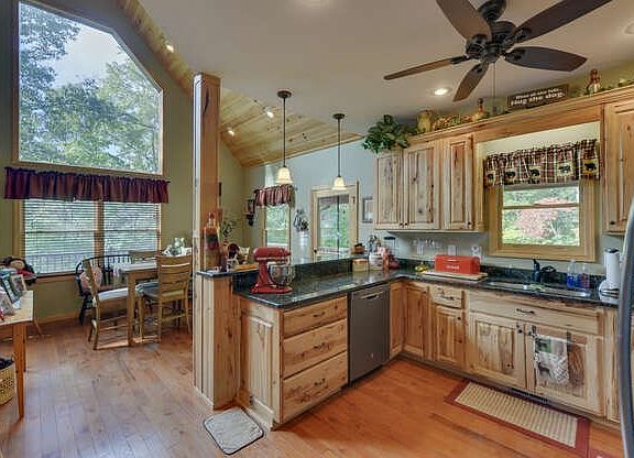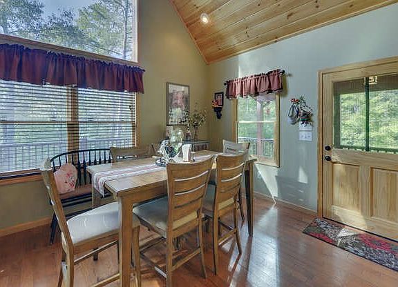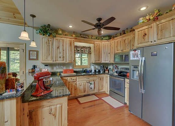 2B/3BA w/bonus in the finished basement beautiful log chalet on private 2.95 acres w/detached garage & a great deal of parking! MSTR suite w/private balcony on upper level with BR/BA closed off from library/office loft. Hickory cabinet kitchens w/island bar seating connected to Great Room w/corner fireplace keeps friends & family close at hand. Or spread out to the finished basement w/family room, BA, bonus &laundry. Walk out from basement to covered patio area & sink into the hot tub. Enjoy the smells & sounds of fall as you gather around & pull close to the fire pit off of lower level deck. The main level level living extends to open deck & covered porches. Close to hospital as well.