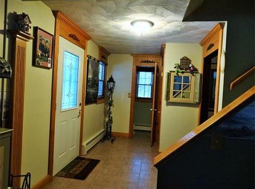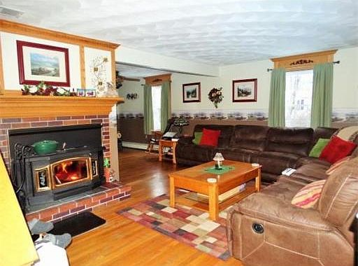 A Farmers porch welcomes you to your home! Large L shaped LR w/wood stove insert, hardwood floors, custom oak encasements. Kitchen offers center island, loads of cabinets, dining area and provides a serve thru to the game room. Slider leads to 24x14 deck overlooking large backyard. Game room w/gleaming floors and bay window flow to the office with skylight, loads of windows and pellet stove (negotiable). 2 large bedrooms with wonderful closet space. Master suite offers loads of windows, large walk-in closet w/organizers, 3/4 bathroom w/large glass shower enclosure and tile floor. Oversized 2 car garage offers heat, storage and added bonus of additional space above for expansion possibilities galore. Basement has loads of storage, wired for generator (generator negotiable), & bulkhead to exterior. Outdoor enthusiast will love this lot, privacy with plenty of place to store your equipment, snowmobile in your own yard!!! So many wonderful features you will want to view this home.