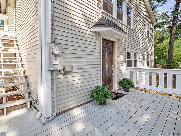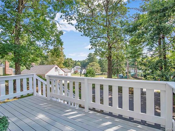 Beautiful ranch with many updates and a gorgeous and serene view and access to the Shaker Pines Lake. Offers 4 bedrooms and 1 full & 1 half bathrooms, 1 detached car garage, central heat, generously sized and freshly stained multi level decks overlooking the peaceful and picturesque lake, perfect for any size of entertaining or just sitting back to enjoy the lake views and serenity. First level offers new carpet, large & bright bedroom, living area and a huge closet. Second level offers nicely updated kitchen with granite counter top, half bath off the kitchen with laundry area, beautiful hardwood floors, Living room with a fireplace, dining section and sliding doors to the backyard & the large deck. Updated full bath and three nicely sized and sun filled bedrooms. Many updates including newer roof, windows and siding. Convenient commute to Hartford, Massachusetts, shoppings and entertainments. Great Value! Move in Ready.