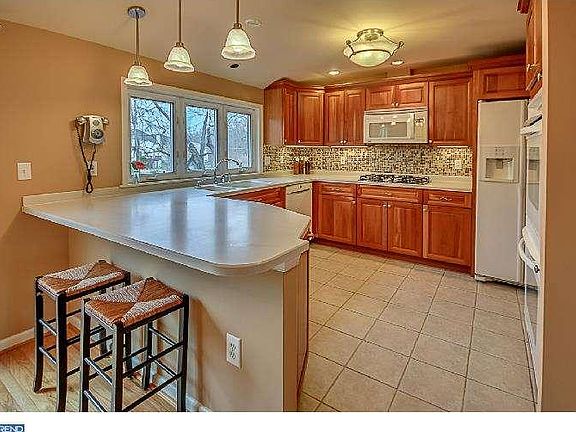 Take a Stay-cation! Vacation at home in this sparkling, remodeled, customized home. Updates include: hardwood floors on main level,corian counter tops, glass tile backsplash & honey-spice cherry wood cabinetry in kitchen, new vanities & light fixtures in main bath & powder room. Entertain in the family room complete with ceramic tile flooring & tile surround as gas fireplace. Room opens up to an additional playroom. Beautiful sunroom spans the back of the home & is adjacent to the heated in-ground-pool. This property is located at the end of the street on manicured grounds with plenty of space for the pets to run and play. Watch the swimmers while manning the BBQ grill from the oversized sized deck off the dining room with sliding glass door. Tons of storage, newer HVAC,replaced doors and windows including 4' front bay window, & two-car garage complete this wonderful home! Ride your bikes to the quaint village of Yardley Boro. This is an excellent location for commuting to New Jersey, New York or the or to Philadelphia! Only minutes to shopping, dining, hospitals and the historic sights of Bucks County! Playroom could be converted back to 4th bedroom by seller at buyer requests.