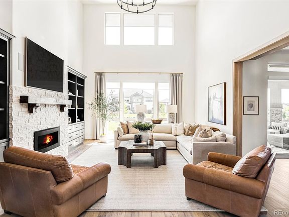 Steeped in breathtaking lake and mountain views, this exquisite Wild Plum home seamlessly blends luxury and functionality. Recently completed in 2021, this home has since been extensively upgraded to perfectly meld modern convenience w/ timeless elegance. Enter into a gracefully flowing layout flanked by vaulted ceilings and expansive windows. Custom built-ins and updated lighting add a touch of elegant sophistication throughout. The living area warmed by a fireplace opens into an impressive chef’s kitchen showcasing stainless steel appliances. A dedicated main-level office area presents a private home workspace. The upper level hosts four en-suite bedrooms, including the luxe primary boasting a spa-like bath and access to the laundry room. A finished basement features an additional bedroom, full bath, a large rec room and bonus space. Revel in outdoor relaxation in a stunning backyard boasting a covered patio w/ a fan and TV, an outdoor kitchen, a firepit and an inviting seating area.