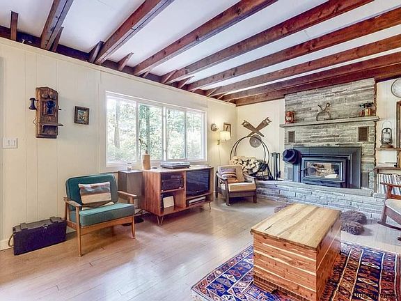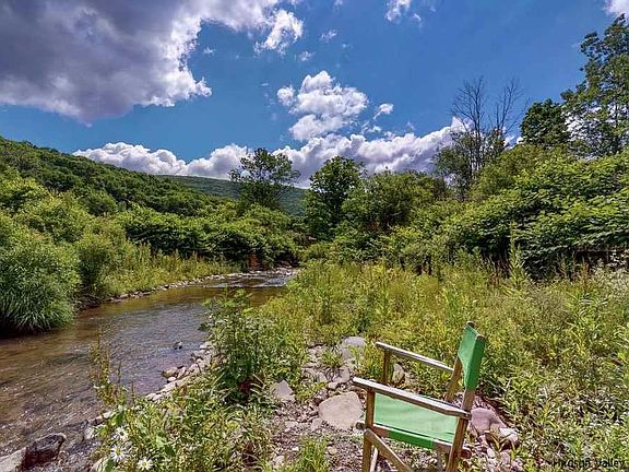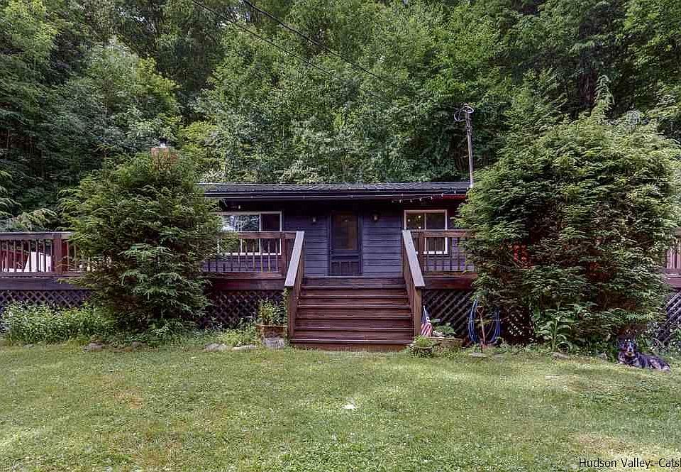 At first glance, this house looks like it ticks all the boxes for an ideal Catskills getaway: a very nicely renovated cabin - with boatloads of original charm - plus a large wraparound deck, mountain views, a small pond, and total privacy. The incredible secret here is that the current owners added significant drainage to transform a huge section of previously marshy land into a usable meadow bordered by a long stretch of the picturesque Birch Creek, a firepit, and truly spectacular mountain views. You walk down a short wooded path directly in front of the house, the land opens up and you realize that you truly have your own not-so-little piece of paradise! This is where friends and family come to play or camp, where a movie screen and projector could be set up for nighttime viewing, where kids and adults alike can wade and splash and enjoy the sound of the beautiful creek. The home itself is absolutely adorable with the open living room/dining/vintage kitchen opening out to nature with the large deck plus massive windows - and reminding us that winter is coming (in a good way!) with a beautiful stone frieplace with a wood-burning insert. The owners undertook a massive renovation (details can be provided) that includes upgrading and insepcting all electric, replacing all plumbing, replacing all windows, replacing a major structural beam to level the floor, new baseboard heating with Nest thermostat, new insulation and more. The large walkout basement is one area where a new owner could use their creativity to increase the usable square footage, but is fantastic for storage and a workshop, as used currently. The house and the land are totally private, yet are less than a 5 minute drive to Belleayre Mountain for skiing (which also means 3 minutes to Belleayre Beach at Pine Hill Lake for an actual white sand beach with swimming, kayaking, and more.) Some of the best hiking in the Catskills is within a few minutes of the home - and some of the most beloved restaurants, both old and new, are within a short drive: Peekamoose (2 mins), Phoenicia Diner and Woodstock Brewing (under 15 mins), Urban Cowboy Lodge (10 mins), to name just a few! Could be conveyed furnished, if desired. To be discussed upon contract.