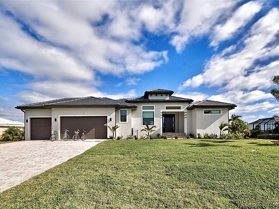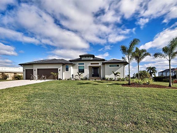 YOU can have it all: PANORAMIC GOLF COURSE AND POND VIEWS! AN ALMOST NEW 4 BEDROOM (1 Main & and 1 Junior Suite) / 3 BATH / 3 CAR GARAGE HOME! HEATED POOL WITH HOT TUB EMBEDDED IN A LARGE PAVER COATED POOLDECK! A COMBINED EASEMENT OF MORE THAN 90 FOOT LEFT AND RIGHT OF THE HOME FOR EXTRA PRIVACY! If you are seeking uniqueness in a perfect location - you'll find it here in the prestigious Golfing Community of Cape Haze with its distinct positive lifestyle. From the privacy of your screened lanai you are overlooking the game of Golf on the Links Golf Course with its nice Pond with all kind of wildlife. Built in 2023 with an open split floorplan with a generous living space, this home has only been gently used by it's European owners. It offers a seamless blend of contemporary elegance and functionality. It is located very close to the Boca Grande Beaches. You will instantly be greeted by the welcoming, open-concept Great Room with soaring 11 FT Tray Ceilings with LED Mood Light, the sun-drenched split floorplan with open Pool and Pond views. Dramatic Kitchen with 3cm Phoenix sparkling Diamond Quartz, with waterfall left & right of island, great breakfast bar, lots of counter space, pantry with wood shelving, stainless steel appliances, upgraded MAPLE ESPRESSO cabinetry, soft close doors and drawers, integrated microwave, a wine refrigerator and silver canvas glass tile backsplash with undercabinet lighting. It's the perfect place to prepare delicious meals while enjoying panoramic views of the Golf Course. Entertain with ease as the flow out to the lanai has 3 stacking 8 FT glass sliders on one side and a 90-degree slider on the other so you can bring the outside in. Large covered lanai with pool with rectangular hot tub is embedded in a brick pavered pool deck. Whirlpool functions can be handled easily by a handheld remote control. All water features can be heated on cooler days. Start your day sipping coffee on the spacious lanai, gazing at the calm water glowing in the morning sun. Spacious Main Suite with direct access to the pool deck. Great Master bath with his and her vanity, freestanding Mermaid tub plus walk-around shower both with Turquoise Mosaic accents, privacy toilet and his and hers walk-in closet. Junior Suite with a large walk-in-closet and an en-suite bathroom with walk-in shower. A pocket door separates the guest quarters from the main living area with two Guest bedrooms. They share a bathroom with a single vanity and walk in shower. This bathroom also serves as a pool bath. Junior Bath and Guest come with the new elegant LED lighted vanity mirrors. All flooring is wood look Luxury Vinyl. The inside laundry room comes with sink and frontloading washer and dryer. The durable Dark Charcoal Blend SAXONY Tile Roof is designed to withstand the elements. There is a 2 car garage plus an enclosed single garage with a door with coded lock to the double garage. Both garages come with the durable Epoxy floor. Windows and the 8 FT Sliding Doors are Impact Resistant for added security and protection. If Golf is your Game – this is your ideal Home.