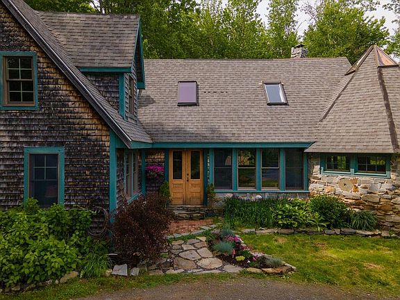 Unique opportunity in Union! Sitting on a private 2+/- acre lot is an inviting cottage style home straight out of a fairy tale. This 3 BR 2 BA showcases antique features with its stained glass and round windows, exposed beams, interior and exterior stone detail, and beautiful built-ins while also touting modern updates including stainless steel appliances and updated bathrooms and kitchen. Outside the lot is a dream with perennial and vegetable gardens, peach and apple trees, several sheds and outbuildings as well as an additional 122+/- acres of conservation land with which to roam. Conveying with a one-sixth ownership share of the Twin Springs Farm Land Association, enjoy the conserved land that includes a swimming hole, and plenty trails to explore. With beautiful views of Mt. Pleasant, this fairy tale spot is a must see!.