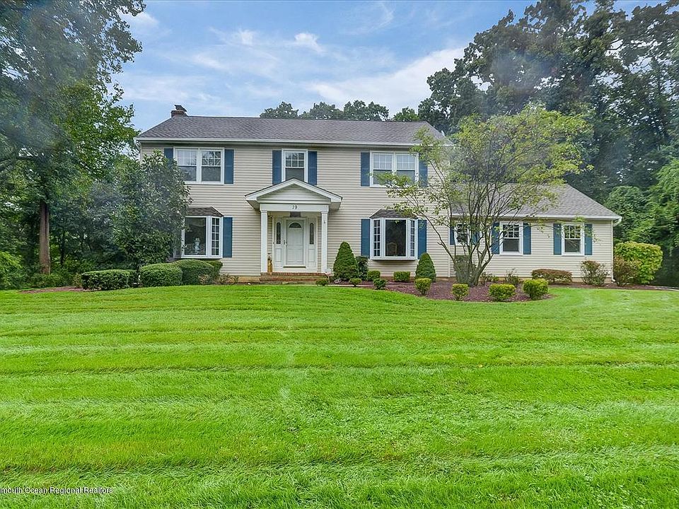 This perfect home can be yours if you act fast! The cornerstone of this freshly painted, expanded 4 Bedroom Center Hall Colonial is the expanded Kitchen with granite countertops and inviting Breakfast Room with a slider to fabulous stone paver patio (26x24) and deck (40x14) overlooking the fenced in in-ground kidney shaped vinyl pool (39x21). Main floor features an Office/Playroom, Family Room w/gas fireplace, Dining & Living Rooms w/beautiful Bow windows. Upper level features the Master Bedroom with en-suite bath and walk in closet, and three additional Bedrooms with shared hall bath. Lower level offers both finished space as well as unfinished storage space. Located in a very desirable part of Holmdel on just over an acre of level land, this home is the one you've been waiting for!