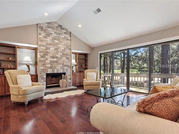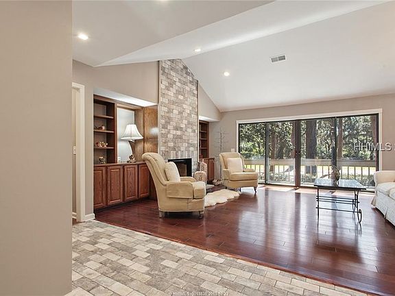 Spectacular Sea Pines home nestled under live oaks in the Club Course community. Situated on almost 1/2 acre overlooking the Sea Pines Country Club course, this beautiful, renovated home has 2 large living areas with two fireplaces plus a large separate dining room. Great room boasts a magnificent vaulted ceiling. Deck stretches across the entire rear of the home. Perfect for indoor or outdoor entertaining. Multiple uses for the bonus/4th bedroom - game room, media room, endless possibilities.