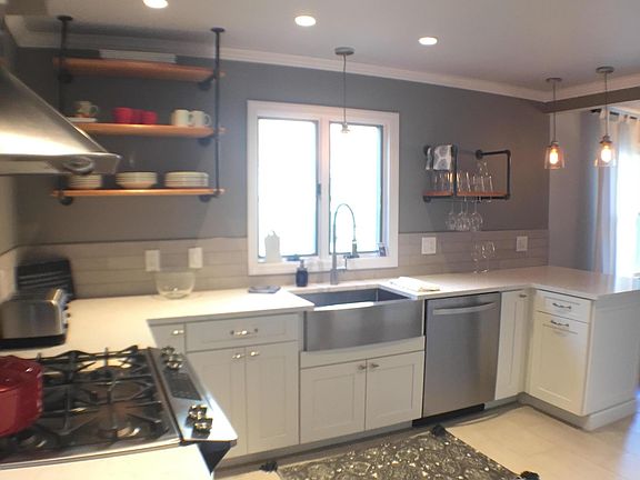 cozy updated ranch house with DRY basement-painted walls and floor with cabinets. Oversized garage/auto opener, painted with cabinets. Low e windows/screens. Raised panel doors Washed maple cabinets/pull out drawers gas hot water &dryer